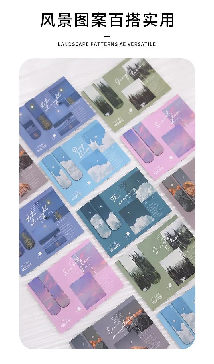 - Contenido: Set de marcapáginas magnéticos con diversos motivos de paisajes.