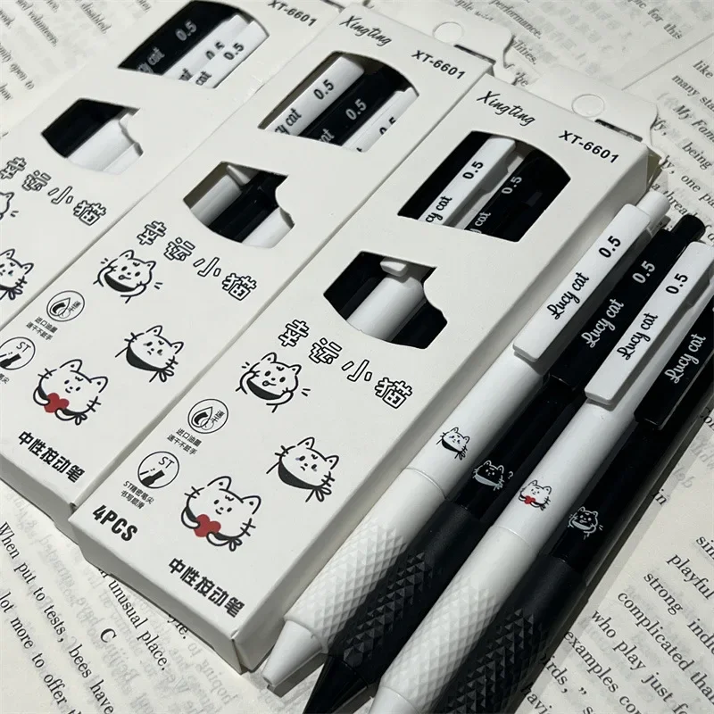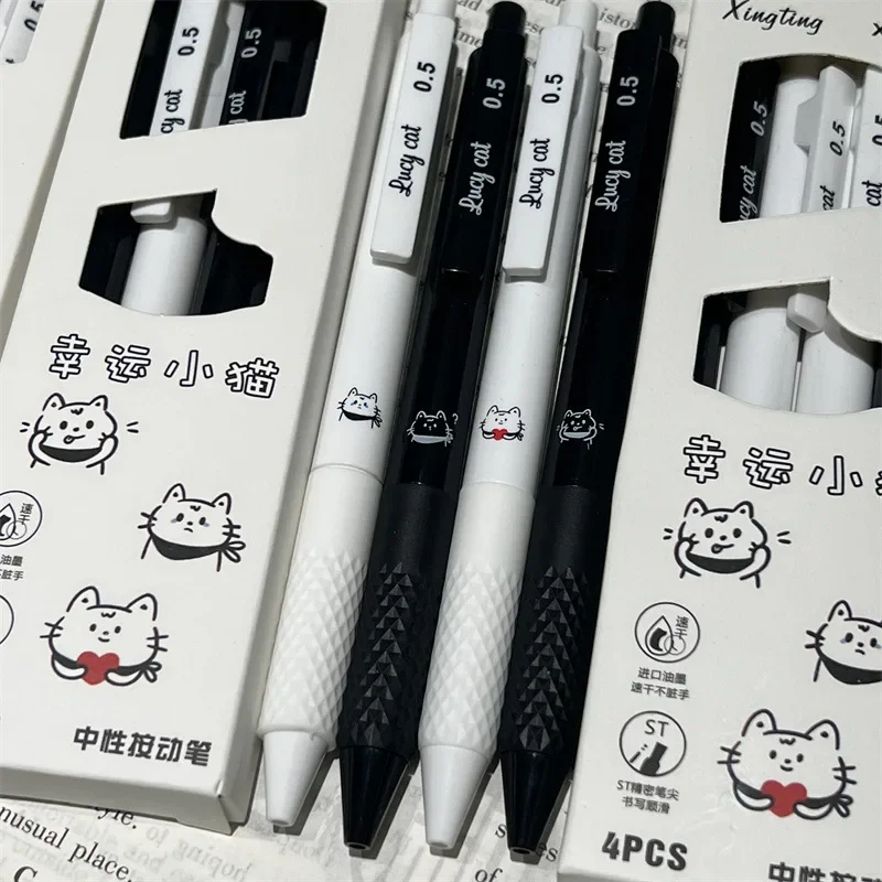 Bolígrafos Kawaii de 4 piezas, papelería estética, bonitos bolígrafos de gatito de la suerte, tinta negra, suministros escolares, juego de bolígrafos para regreso a la escuela
