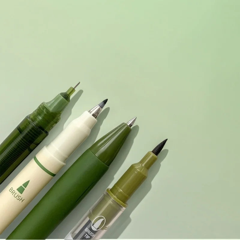 Cada pieza del set ofrece una experiencia de escritura fluida y precisa, ideal para quienes disfrutan del journaling botánico, la planificación diaria o simplemente quieren añadir un toque distinguido a su escritorio. Su diseño minimalista y mate los convierte en el accesorio perfecto para complementar tus libretas más especiales.