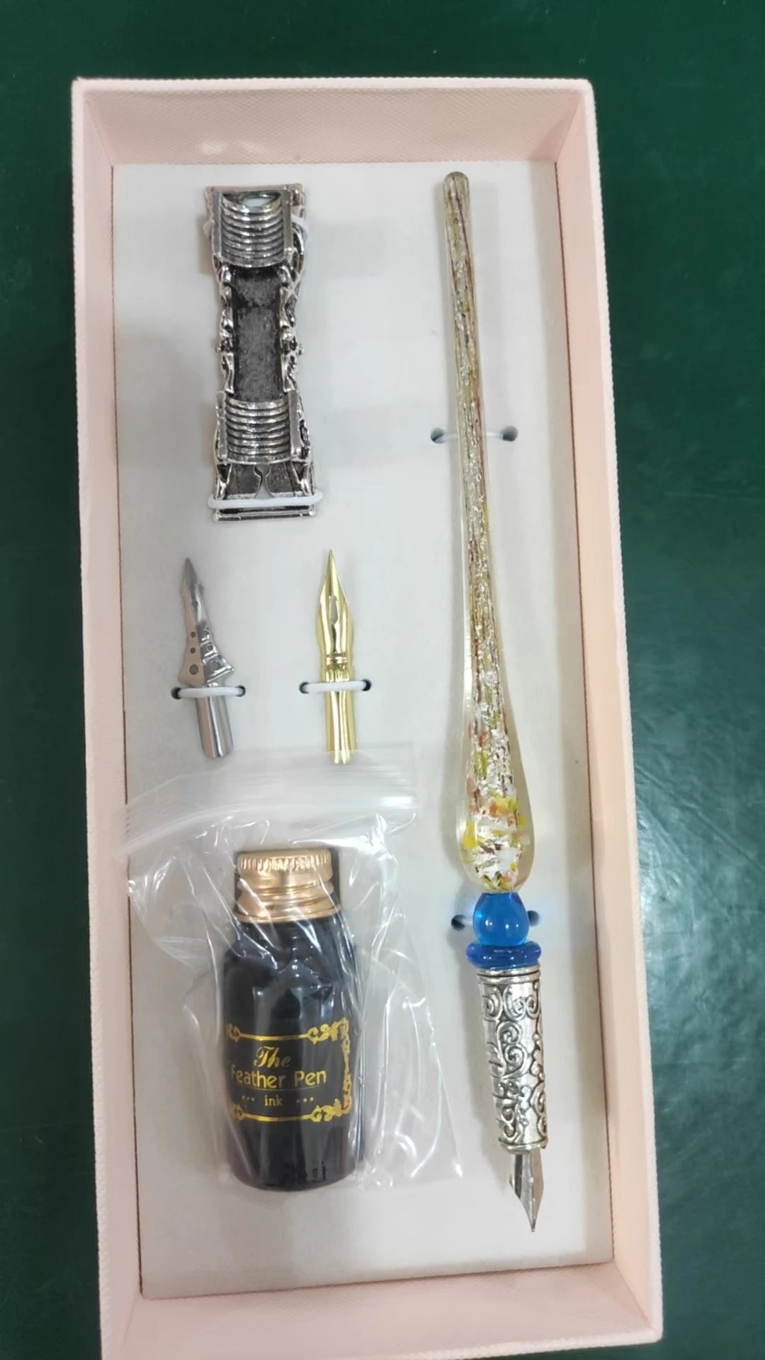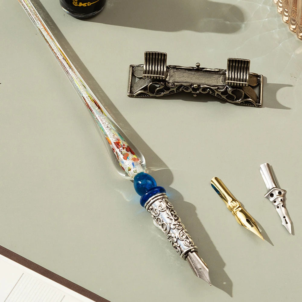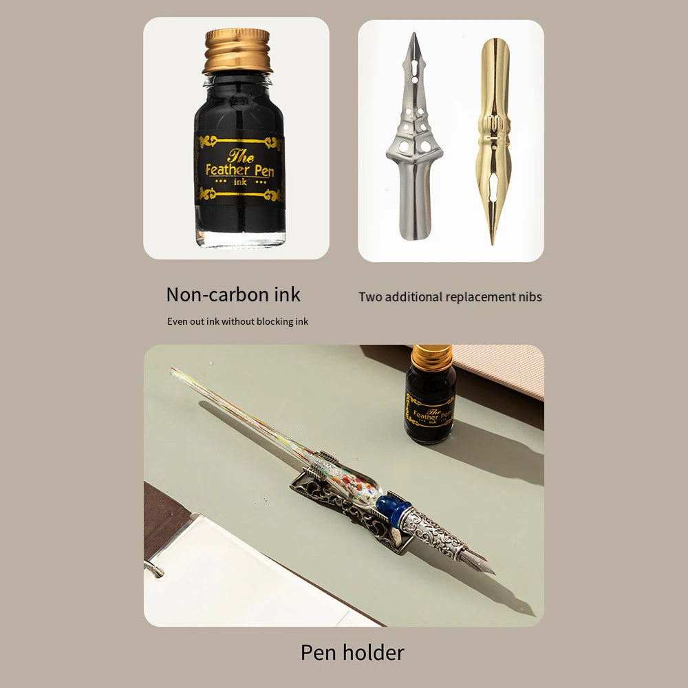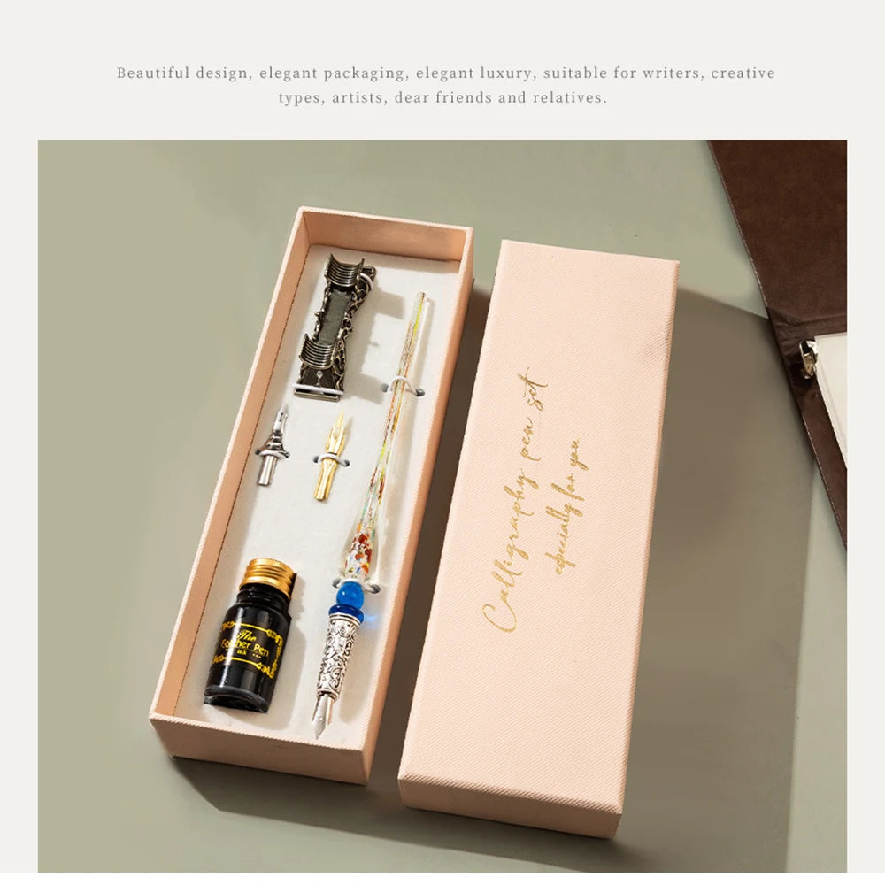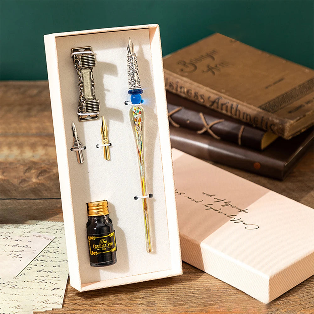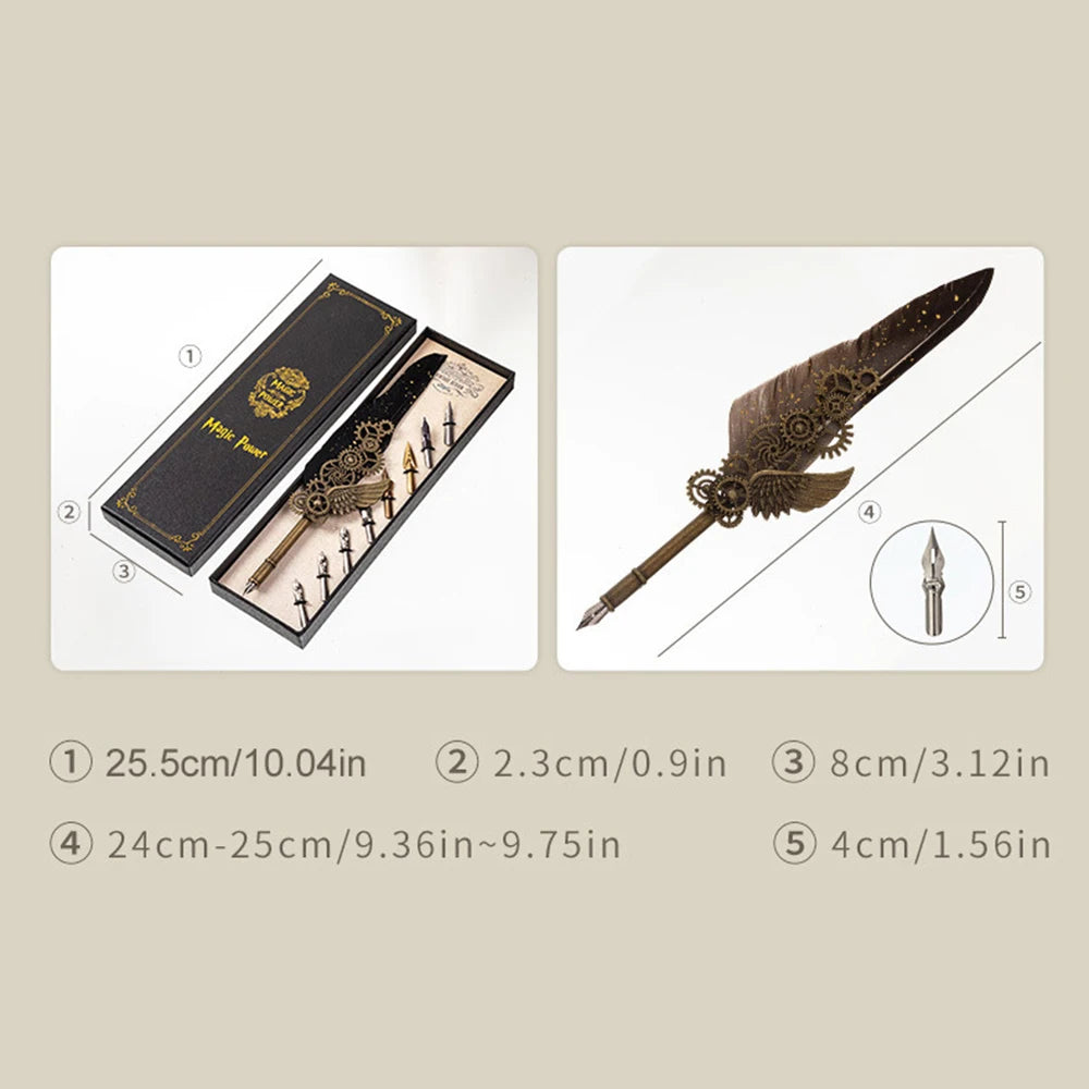 Domina el arte de la caligrafía con un toque de misterio. Este set inspirado en la estética Steampunk combina la elegancia de la escritura antigua con detalles mecánicos en latón envejecido.